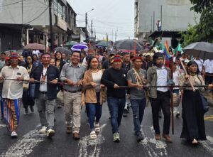 Marlon Vargas encabezó la marcha indígena en Puyo
