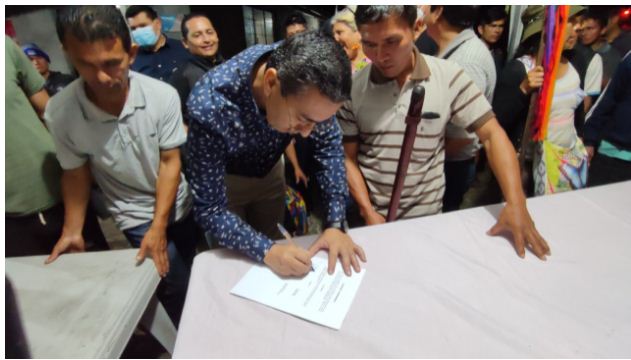 En la anotada reunión, los dirigentes de la parroquia escucharon los justificativos y ofrecimientos de obras de las autoridades, Augusto Vargas líder de Canelos, conjuntamente con sus comuneros, aspiran que lo firmado entre las partes se conviertan en realidades y no ser engañados una vez más.