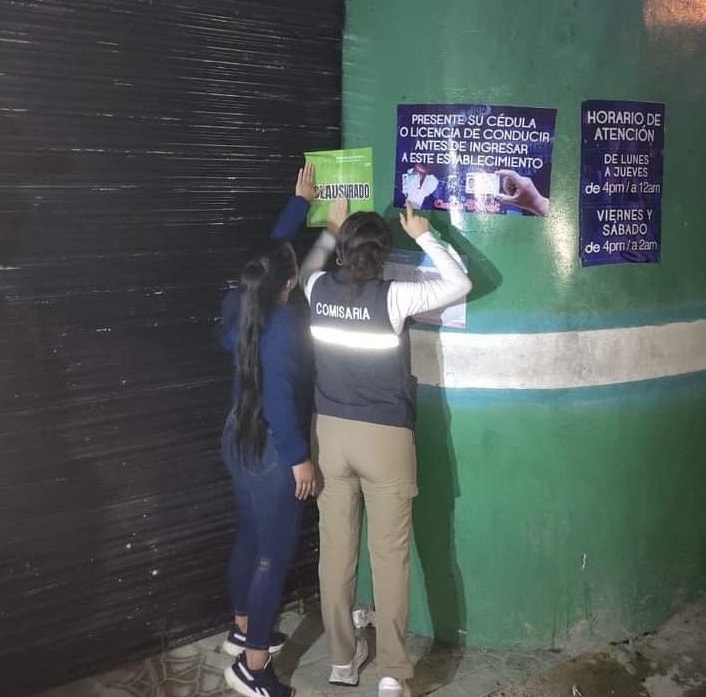 Yomira Villafuerte, Intendente de Policía en Pastaza, informó que el último fin de semana, en un lugar cerca a la parroquia Veracruz, han procedido a la clausura de un local de categoría uno (night club) debido a que en su interior encontraron a un menor de edad y a varios ciudadanos sin la cédula de identidad. La sanción para el local podría ser de dos salarios básicos unificados SBU (920 dólares) y el cierre por 30 días.
