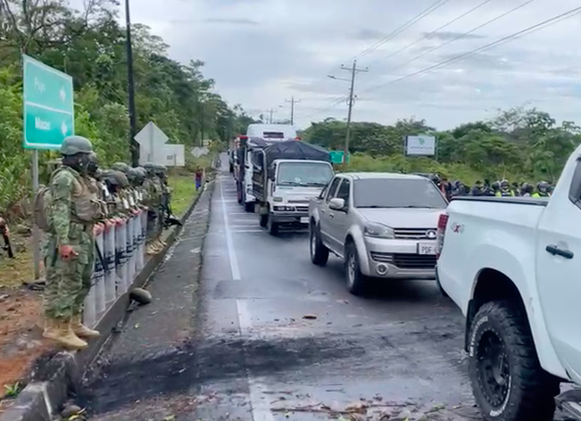 Si continúan cerrando vías, van preso!.  Al día siguiente de que las nacionalidades de la Amazonía anunciaran que plegaban a las movilizaciones convocadas por la CONAIE, indígenas de la provincia de Pastaza en un número reducido cerraron la vía Puyo Macas. Un contingente mixto entre policías y militares luego de retirar los obstáculos, habilitaron la vía y se normalizó el tránsito vehicular.