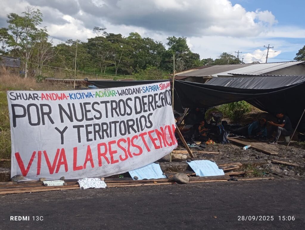 En la vía Puyo-Macas kilómetro 26, protestantes instalaron su >Puesto de resistencia>.
