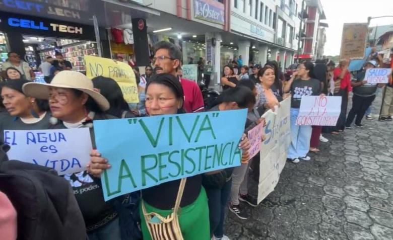 Como medida de protesta otro grupo de mujeres de la organización llamada >Mujeres Amazónicas”, que lideran mujeres de la tienda política Revolución Ciudadana, el pasado viernes protagonizaron un plantón junto a la gobernación de Pastaza, luego una marcha por Puyo y tras dos horas de actividad los manifestantes desaparecieron.