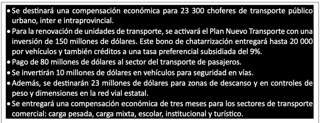 El ofrecimiento del Gobierno hacia los transportistas alcanza los 800 millones de dólares.