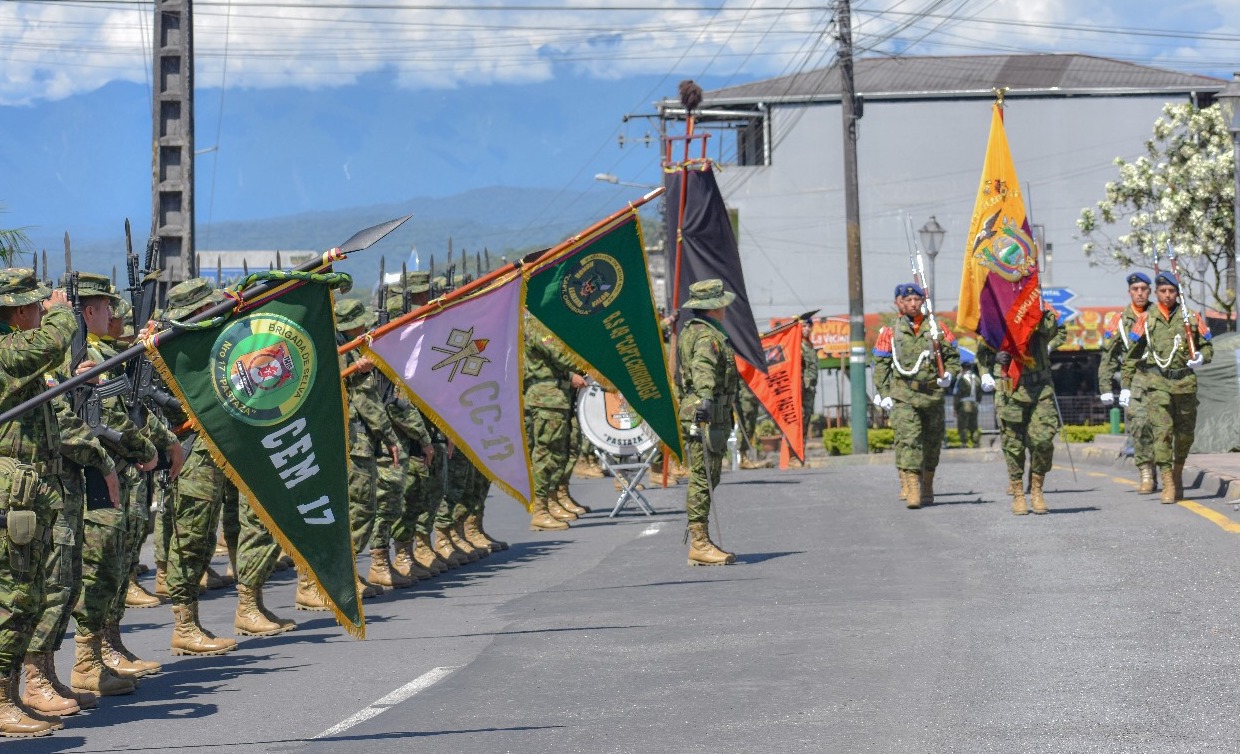 La plaza cívica «Héroes del Cenepa» en la ciudad del Puyo-Pastaza, fue el escenario donde la mañana del 26 de septiembre de 2023, militares de la Brigada de Selva Nro. 17 Pastaza realizaron la ceremonia cívico militar por conmemorar el Día de la Bandera Nacional.
