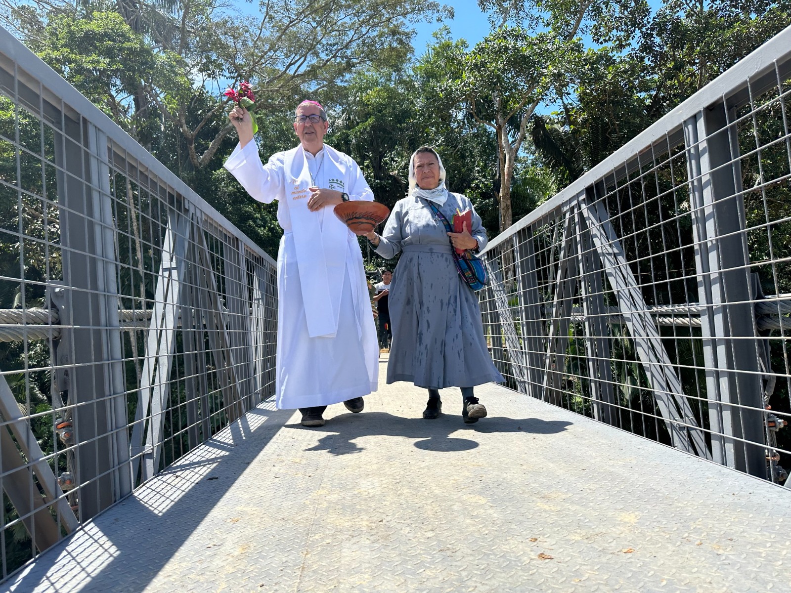 El puente colgante de reciente construcción ha sido bautizado como “Puente del Medio Día”, fue bendecido por monseñor Rafael Cob García, e inaugurado el pasado 19 de mayo de 2023, en medio de las festividades de la Pacha Mama.