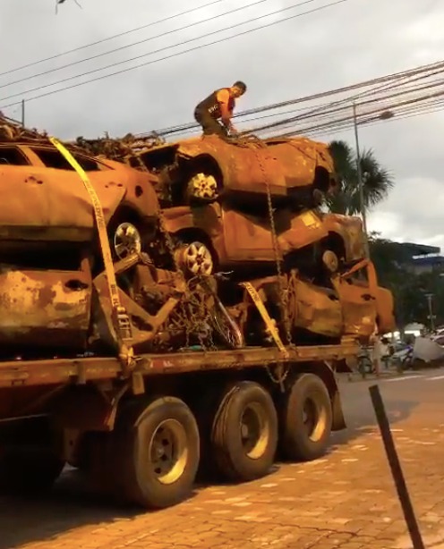 De la cantidad de vehículos destruidos, el pasado 19 de julio de 2023, José Luis Proaño, funcionario de la compañía de seguros “Alianzas”, llegó hasta Puyo para trasladar hasta las bodegas en Quito los vehículos y motocicletas convertidos en chatarra.