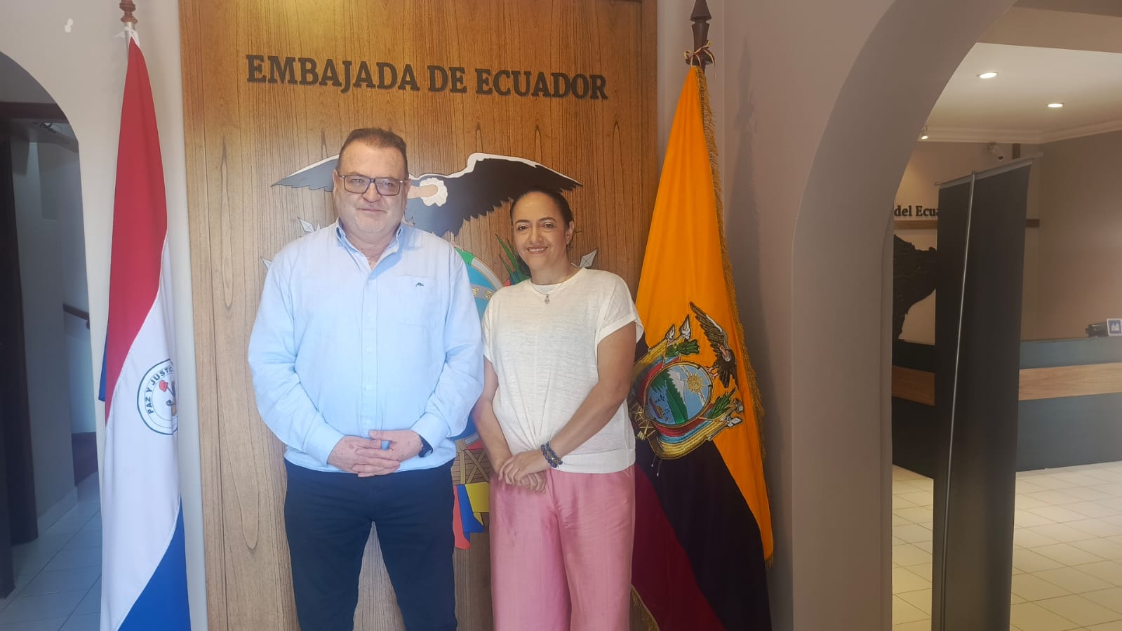 de la Embajada del Ecuador en Asunción, Ruiz dio la bienvenida a la periodista