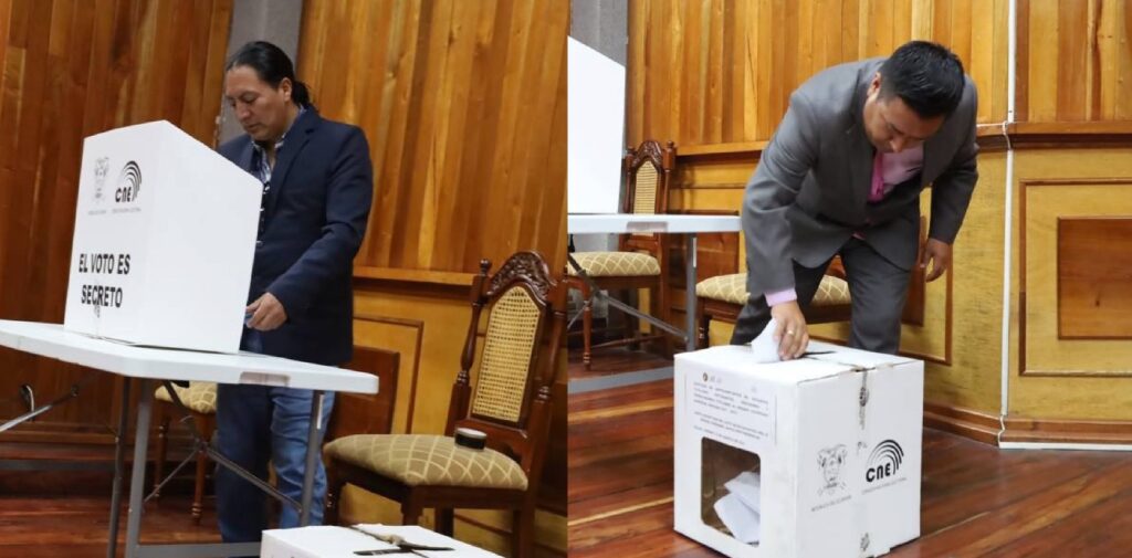 En elecciones repetidas, Churuchumbi alcanzó 451 votos; Cecilia Velazque, 416 voluntades y Jorge Herrera, consiguió 14 votos. Churuchumbi es aliado de Leonidas Iza.