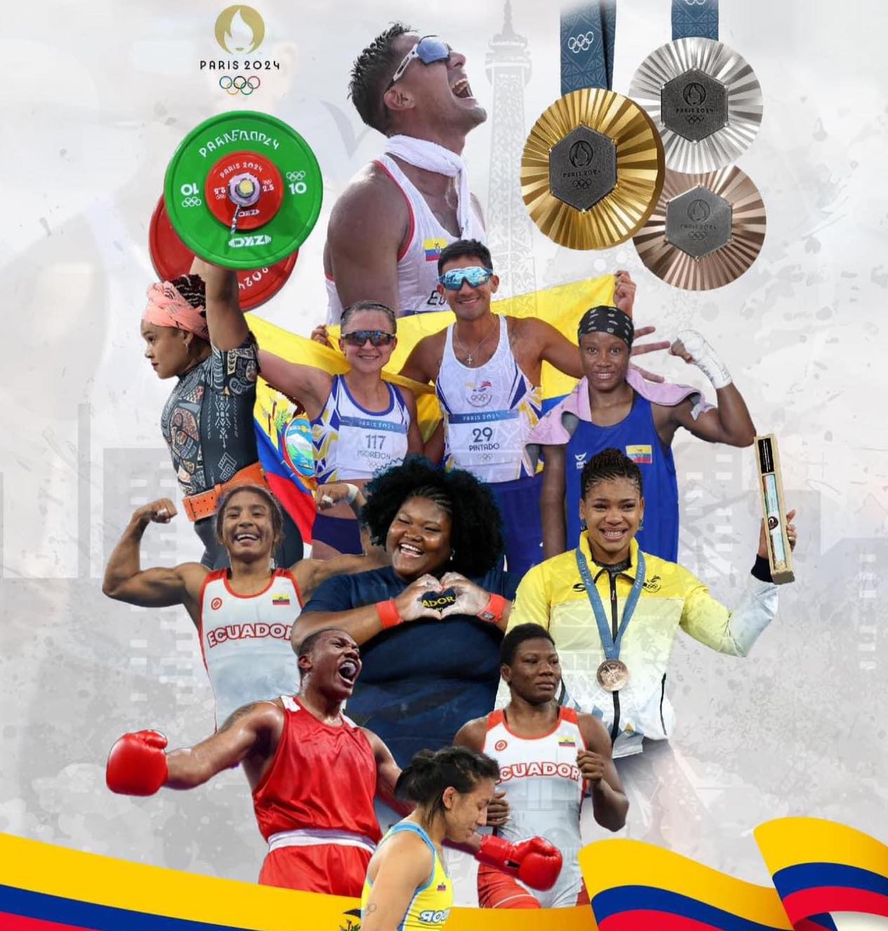 Daniel Pintado (20 km marcha), Glenda Morejón y Daniel Pintado (relevos mixtos), Lucía Yépez (lucha libre), Angie Palacios y Neisi Dajomes (levantamiento de pesas), ganaron medallas en los Juegos Olímpicos de Francia, alcanzaron la gloria.